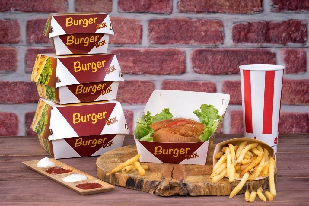 | Hamburger Box M (medium) | 114 mm | 114 mm | 90 mm | 750 Stück |