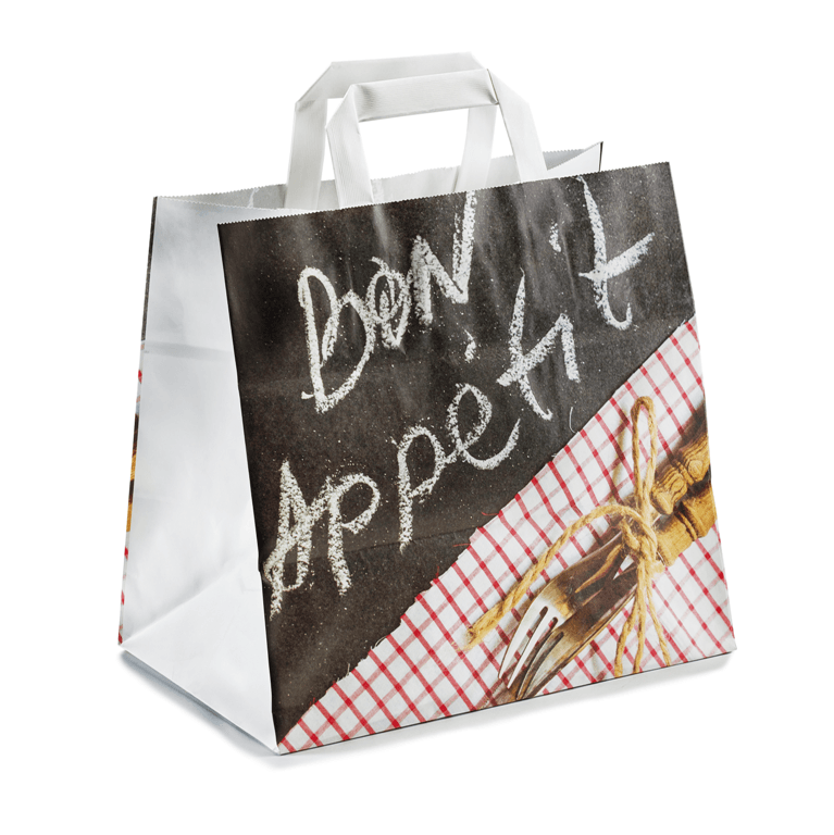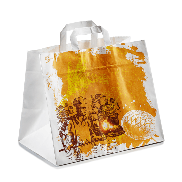 | 26 + 17 x 25 cm | braun oder weiß, 80 g / m² | 250 Stück | 10.000 Stück |
