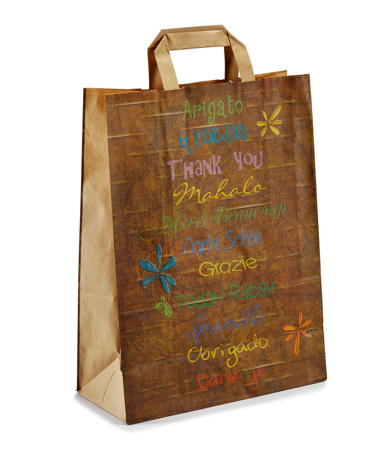 Kraftpapier braun , mit Innenflachhenkel oder Kraftpapier weiß , mit Innenflachhenkel